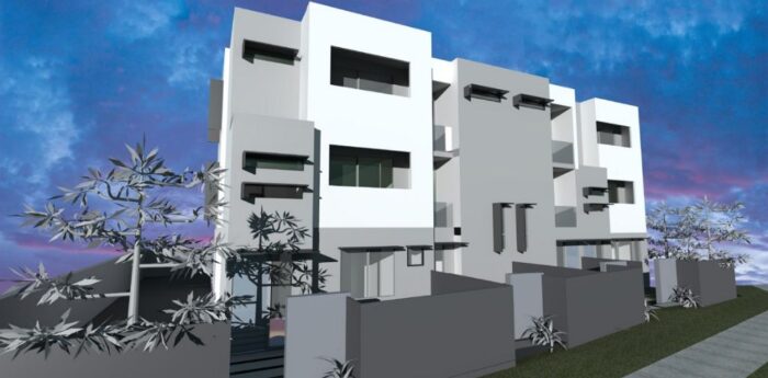 Four (4 no.) three-storey two-bedroom townhouses with lock-up garages